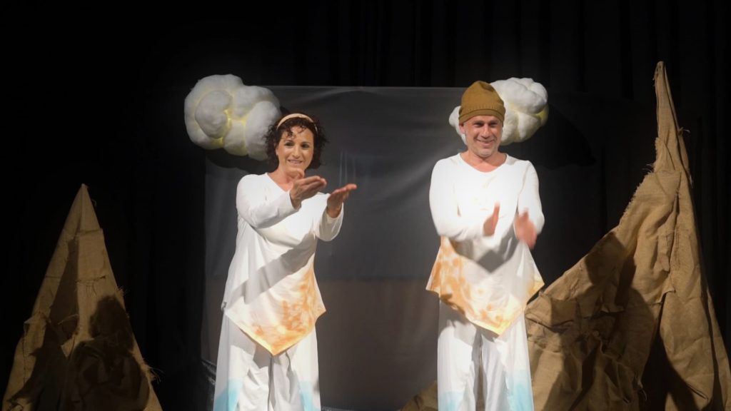 RIU és un espectacle de teatre gestual creat per a públic infantil, que transcorre per un riu imaginari que simbolitza el flux constant de la vida. Un viatge on els elements bàsics de la natura, porten al públic a explorar les emocions, colors, sons i textures de l’aigua, l’aire, el foc i la terra. Mitjançant el joc, la música i la poesia, els dos protagonistes ens submergiran en el món del descobriment i la diversió.